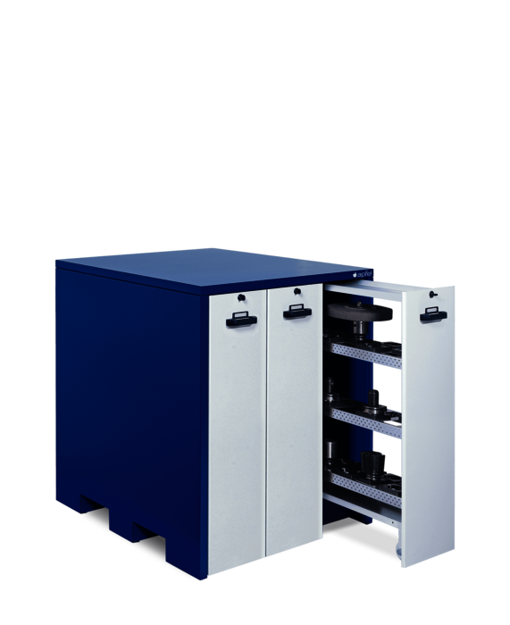 Das Kompaktformat mit 250 mm erweiterter Tiefe und „Panzerauszügen“ für bis zu 126 Werkzeuge (z.B. SK 40)