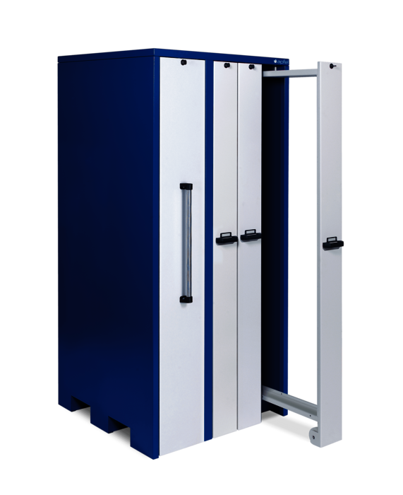 Der hohe Werkzeugschrank mit unterschiedlichen Auszugsbreiten für die Aufbewahrung verschiedenster Lagergüter