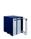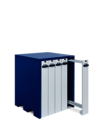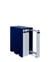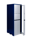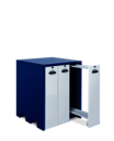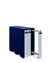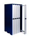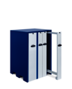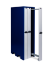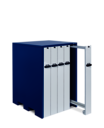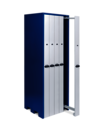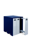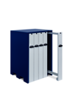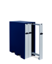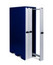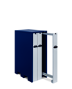 Struktur pulverbeschichtet in Enzianblau RAL 5010 (Korpus) und Grauweiß RAL 9002 (Auszüge)