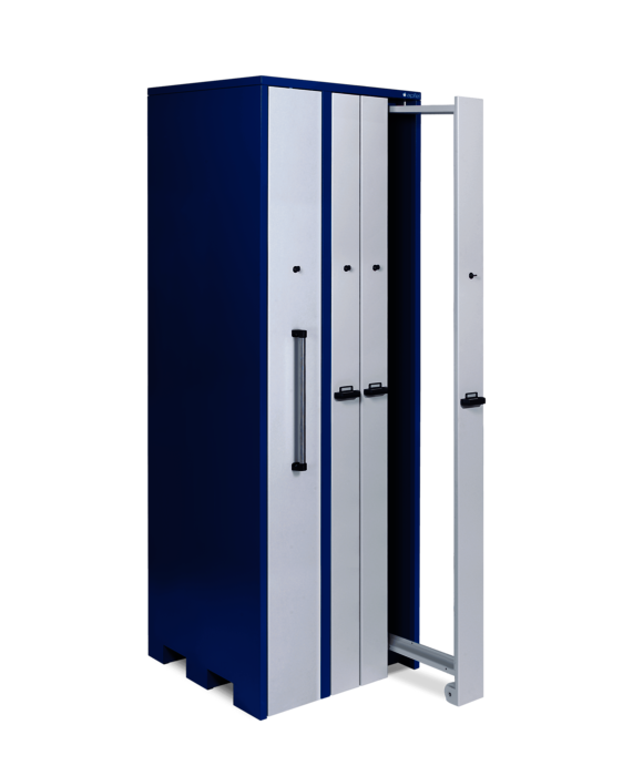 Das Sonderformat mit verschiedenen Auszugsbreiten und 2.850 mm Höhe zur Lagerung von Werkzeugen bis 2.500 mm Länge