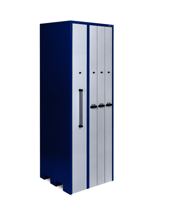 Werkzeugschrank mit 3 Vertikalauszügen à 180 mm Breite mit je 900 kg Traglast und 1 Vertikalauszug à 300 mm Breite mit 1.800 kg Traglast