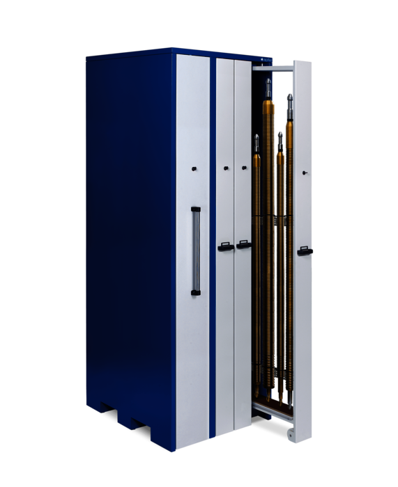 Das Sonderformat mit 2.850 mm Höhe, 250 mm erweiterter Tiefe und verschiedenen Auszugsbreiten zur Lagerung von Räumnadeln bis 2.500 mm Länge
