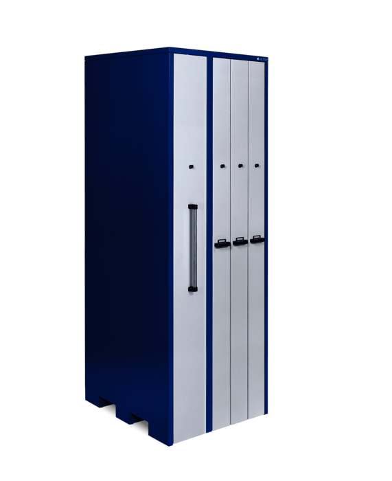 Werkzeugschrank mit 3 Vertikalauszügen à 180 mm Breite mit je 900 kg Traglast und 1 Vertikalauszug à 300 mm Breite mit 1.800 kg Traglast