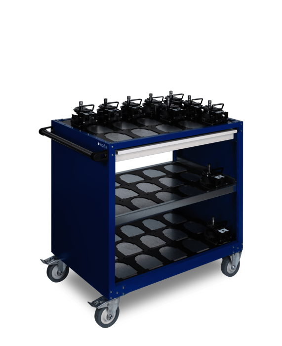Werkstattwagen für leere und bestückte Rüstkassetten